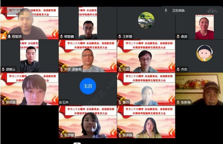 2022年1031日,bevictor伟德官网教师党支部召开主题为“学习二十大精神,永远跟党走,奋进新征程”的支部党员大会。会议由程智淇老师主持,张彦青老师做主讲发言。