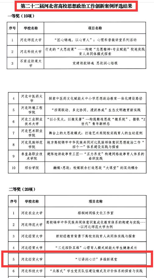 bevictor伟德官网 “‘习语润心田’多维新课堂” 获得第二十二届河北省高校思想政治工作创新案例二等奖 (河北省教育厅主办)