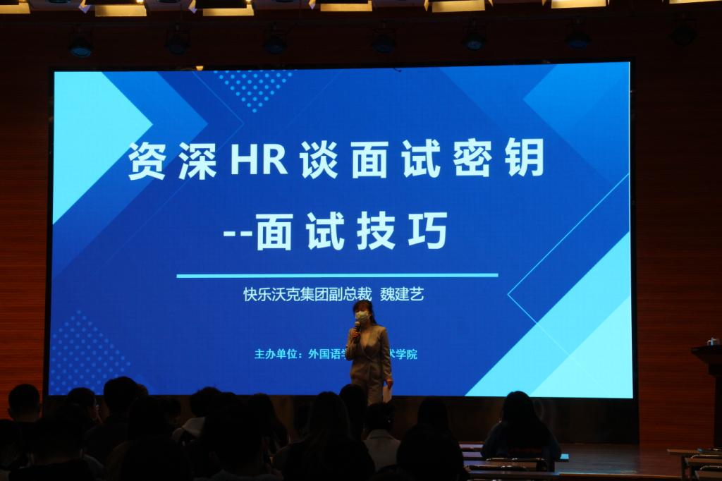 10月24日下午,bevictor伟德官网与艺术公司联合举办《资深HR谈面试密钥——面试技巧》专题讲座,特邀快乐沃克人力资源有限公司副总裁魏建艺传授面试技巧。外国语公司党委书记仇静莉主持讲座,艺术公司党委副书记池晶、团委书记胡增亮,bevictor伟德官网团队建设办公室主任宋妍和及毕业生200余人参加。