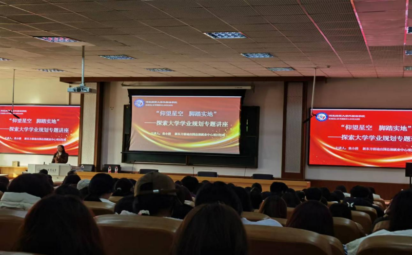 讲座伊始,主讲嘉宾——新东方前途出国总部就业中心项目经理袁小清女士凭借着丰富的行业经验和专业知识,深入浅出地分析了当前就业市场的动态与趋势以及职业生涯规划的路径。通过详实的数据与案例,为同学们展现了不同行业的发展前景,使大家对未来职业环境有了更为清晰的认知。