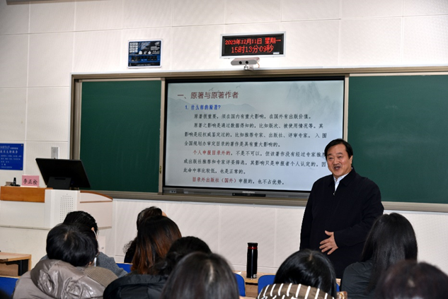 在讲座中,李正拴教授结合自己成功申报的经历,以风趣的语言分享了中华学术外译项目申报经验,明确阐述了中华学术外译申报的注意事项。他指出中华学术外译项目主要资助代表中国学术水准、体现中华文化精髓、反映中国学术前沿的学术精品,而且以外文形式在国外权威出版机构出版并进入国外主流发行传播渠道,旨在深化中外学术交流和对话,进一步扩大中国学术的国际影响力,促进中外文明交流互鉴。他结合亲身经历与经验,从原著与原著作者、译者项目团队、翻译样章、编辑出版流程、宣传推广组织方案等方面深入浅出地介绍了中华学术外译申报的理念、方法和注意事项。