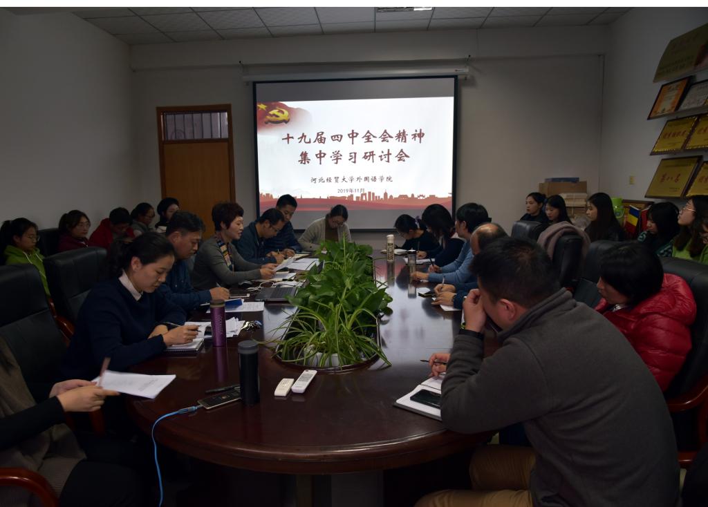 11月14日下午和晚上,bevictor伟德官网集中学习传达党的十九届四中全会精神。公司班子成员,全体行政人员、教师代表及英语专业员工近300人参加。