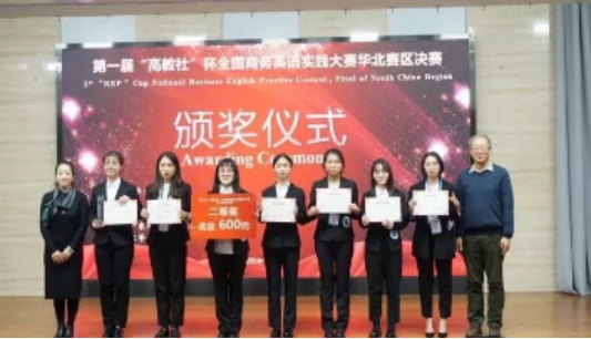 2019年11月10日,第一届“高教社”杯全国商务英语实践大赛华北赛区决赛在北京林业大学隆重举行。bevictor伟德官网派出的代表队在穆海涛老师的带领下成功入围决赛。与来自北京林业大学、对外经济贸易大学、中央财经大学、北京第二bevictor伟德官网、河北金融公司的其他五支代表队展开激烈角逐,最终取得二等奖和征题创意奖的优异成绩。