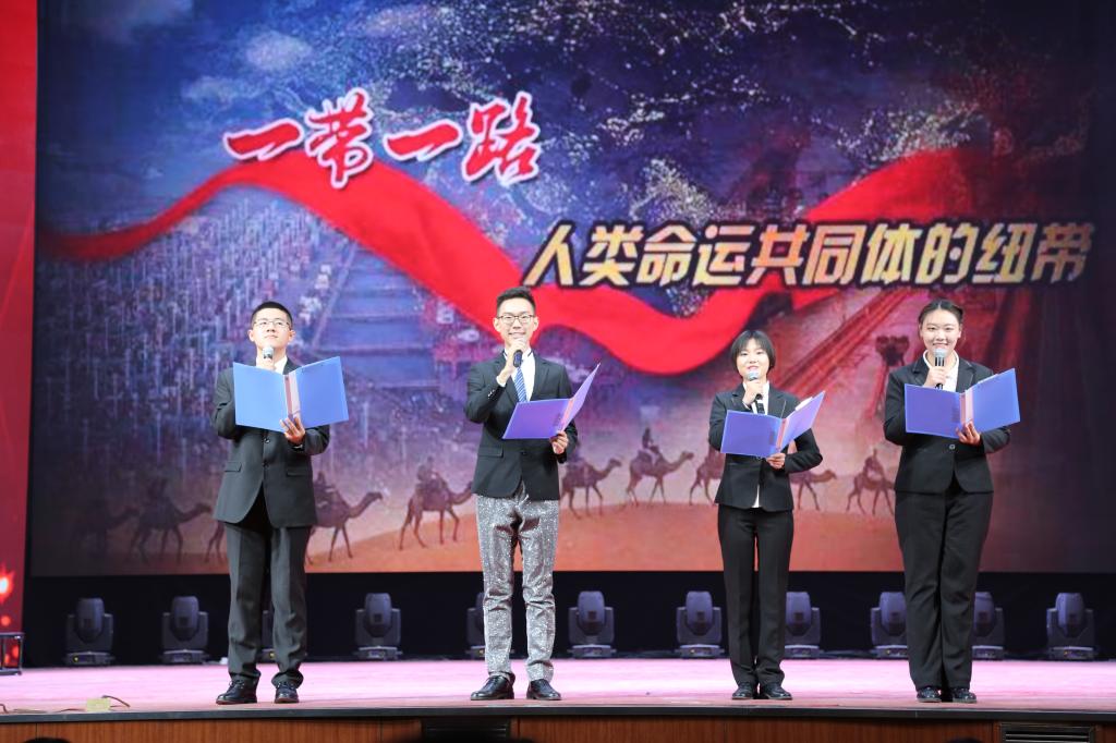 此次公开课由bevictor伟德官网、国际教育公司联合举办,共分为四个篇章:第一篇丝路古韵,展往日传奇;第二篇一带一路,现今朝风采;第三篇成果丰硕,彰大国情怀;第四篇天下大同,筑美好未来。参与讲解教师饱含深情,在画面的时空变换和优美动听的旋律中,以导游式讲解带领现场师生开启一段“新凿空之旅”。追随着大漠孤烟,伴随着声声驼铃走进神秘又壮丽的敦煌,古印度舞蹈《律动天竺》,带领师生体验古丝绸之路的往日传奇;英文rap《一带一路》,将篇章切换到今朝风采,“一带一路”沿线国家与中国友好关系以及所取得的成就生动地展现在全体师生面前。多种语言的讲解,穿插尼泊尔舞蹈《阿尼歌》、地中海歌舞、罗马尼亚风情演绎、情景朗诵《坦赞铁路--中非友谊的见证》等精选节目,见证丰硕成果的同时,彰显出大国情怀;朗诵《大道至远 海纳百川》更传递出构建人类命运共同体的智慧与深刻内涵。公开课在一个个美轮美奂的场景切换中,以中外全体师生共唱友谊之歌圆满落幕。