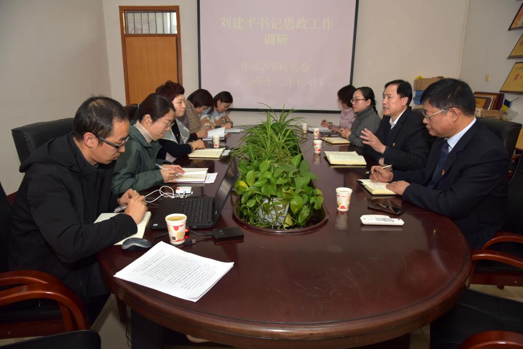 12月16日下午,公司党委副书记刘建平等一行4人作为联系领导到bevictor伟德官网进行思想政治工作调研,外国语公司党委书记、副书记及全体辅导员参加座谈。