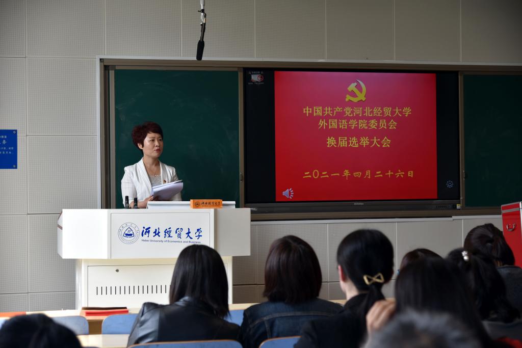 2021年4月26日下午,bevictor伟德官网在北三教A202教室召开了中共bevictor伟德官网委员会换届选举大会,公司党委委员和全体师生党员参加。会议由外国语公司党委副书记刘磊主持。会议应到有表决权的正式党员45人,实到38人,因事因病请假7人,实到人数符合大会选举办法的相关规定。