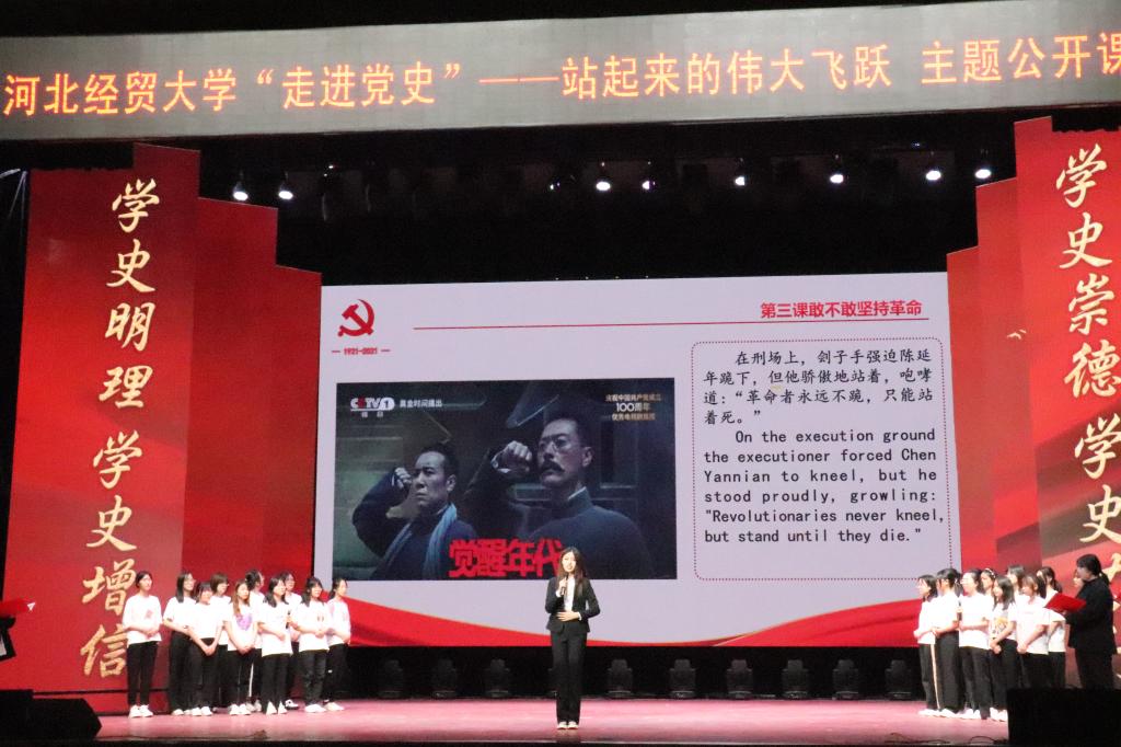5月31日晚上,伟德中国官网“走进党史”——站起来的伟大飞跃主题公开课在校礼堂举行。公司党委书记董兆伟,公司党委副书记陈亮、刘建平出席,公司师生到场聆听。