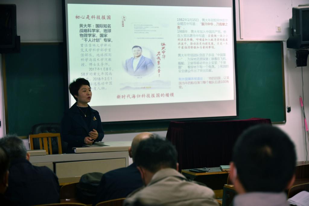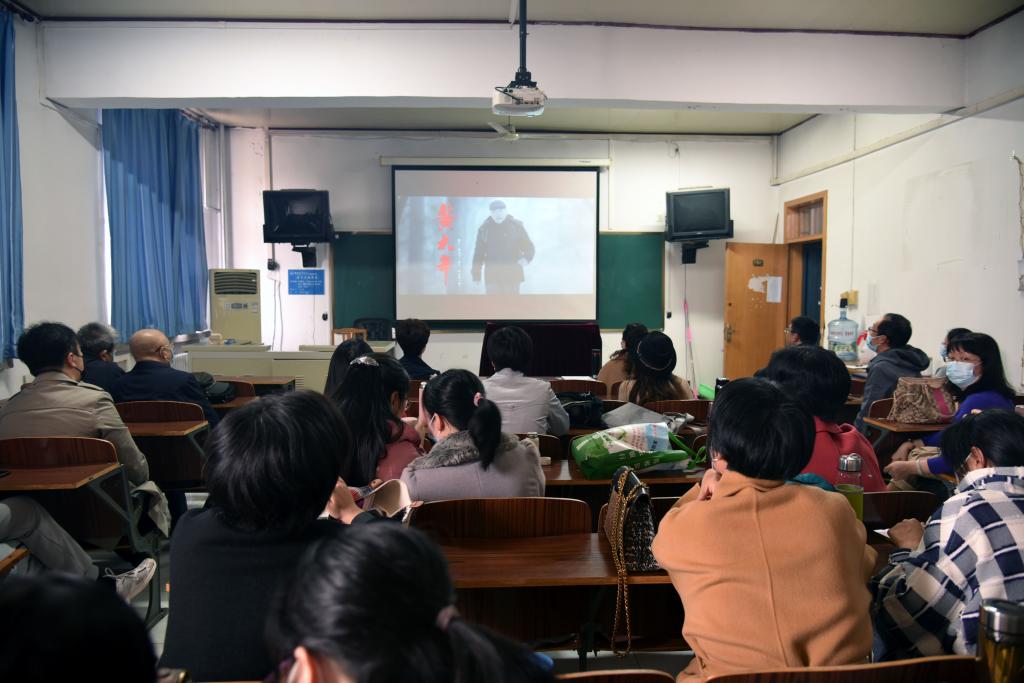 专题教育过程中,全体教职工集中观看影片《黄大年》,在场职工深受感染。