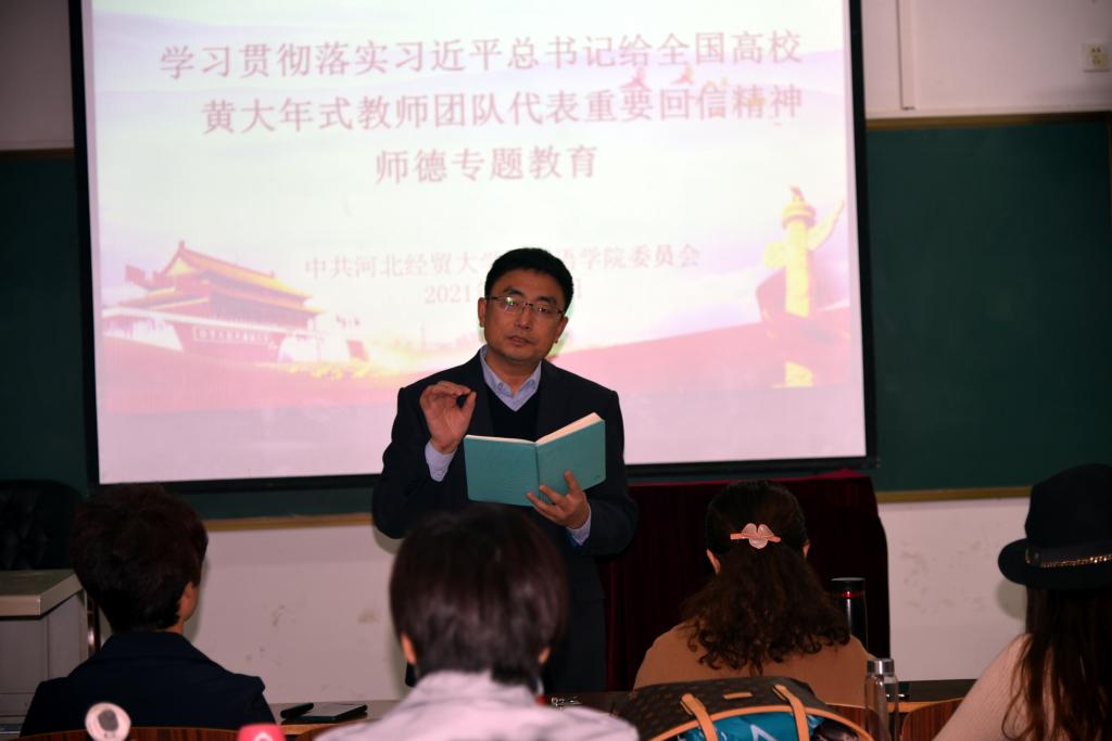 2021年11月1日下午,外国语公司党委开展“学习贯彻落实习近平总书记给全国高校黄大年式教师团队代表重要回信精神”师德专题教育。公司班子成员及全体教职工参加,经理张润主持。