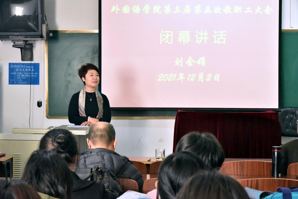 党委书记刘会娟作大会闭幕讲话。她肯定了2021年的工作成绩,代表公司党委对全院教职工一年来的辛勤付出表示衷心的感谢,并就做好下一年度工作对全体教职工提出希望:一要坚定政治站位,切实增强责任感与使命感;二要统一思想共识,精准发力突破重点难点;三要坚持问题导向,落实巡视整改目标责任。全院上下要把立德树人作为根本任务,继续发扬求真务实、真抓实干的作风,以钉钉子精神担当尽责,再创公司各项工作新局面。