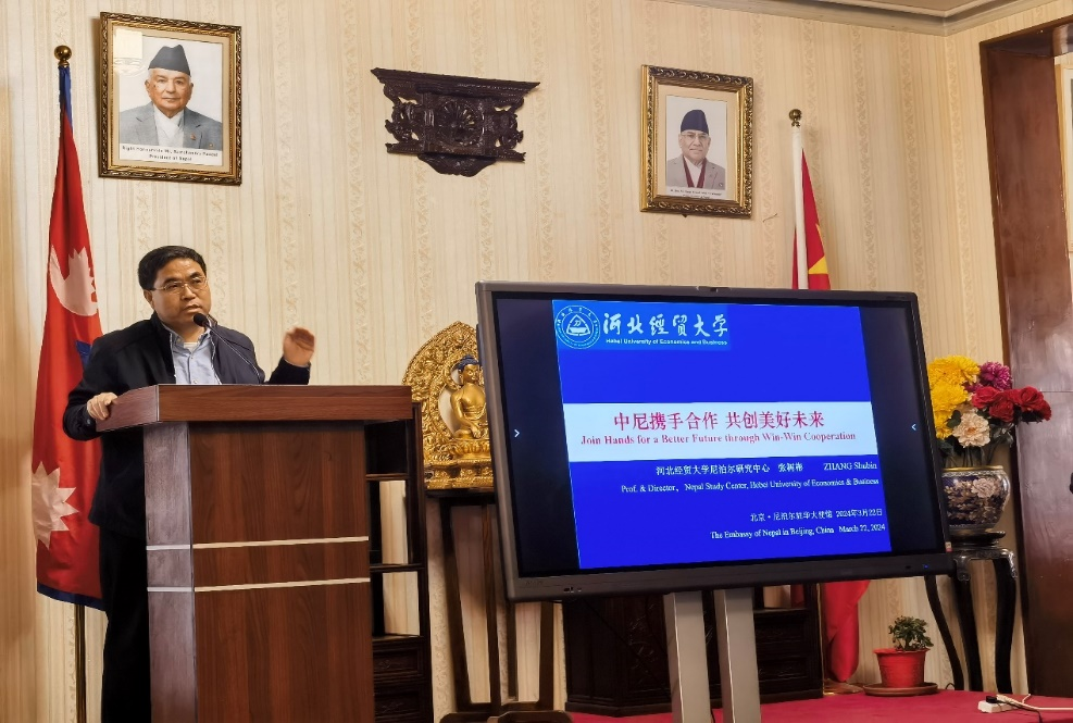 尼泊尔驻华大使比什努·普卡尔·施雷斯塔致欢迎词,尼泊尔前驻华大使里拉·马尼·鲍德尔发表主旨演讲。伟德中国官网尼泊尔研究中心主任、bevictor伟德官网教授张树彬应邀参加,做了题为“中尼携手合作·共创美好未来”的主题发言。他从新执政联盟带来新气象、尼泊尔应对的挑战、中尼永做真诚朋友三个方面展开论述,希望尼泊尔积极参加全球发展倡议、全球安全倡议、全球文明倡议,推动中尼友谊的长久发展,实现两国的发展与繁荣。尼泊尔驻华大使馆以及相关媒体对此活动进行了报道。