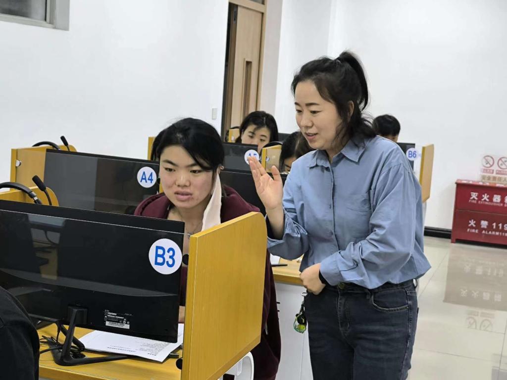 实训活动在综合语言实验中心进行。李秀霞以“外贸单证及案例实操”为题,结合自己在润石集团多年的工作经验,详细阐述了国际贸易的定义、流程、所需单证等核心要点,强调了单证准确无误对于规避贸易风险、保障企业利益的重要性。之后,两位企业导师指导员工们进行外贸单证的实际操作。她们以真实案例为蓝本,引导员工们实践从客户下单到货物出运的全过程,特别是针对各种单证的制作与提交进行了细致的指导和讲解。