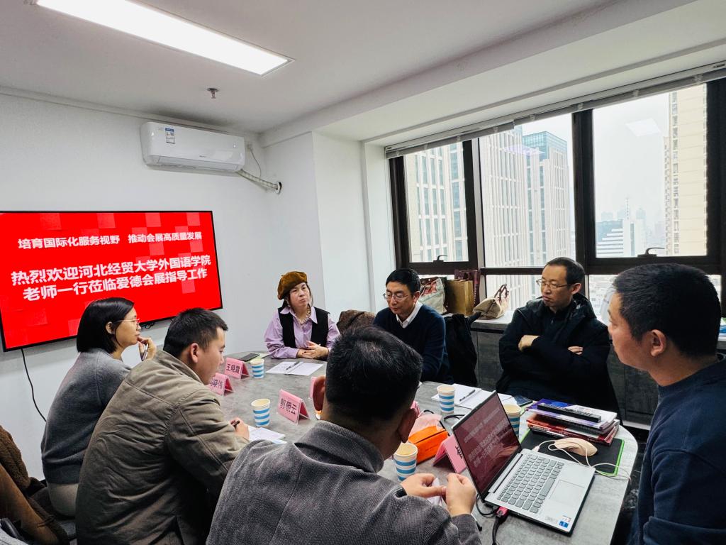 为有效拓宽毕业生就业渠道,2月21日,bevictor伟德官网经理张润率队赴河北爱德会展有限公司开展访企拓岗工作,党委副书记刘磊、英语系主任王晓霞、商务英语系主任郭朝云、就业联络员冯晓伟随同走访调研。