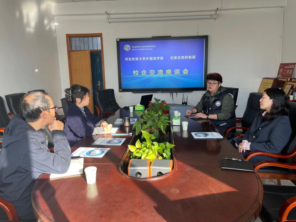 座谈伊始,公司负责人对石家庄四药集团一行的到来表示欢迎,并介绍了bevictor伟德官网的专业设置、人才培养定位及近年员工就业基本情况,重点提及外语专业在跨境商务、医药文本翻译等领域的实践教学成果。贾永亮围绕企业发展布局、国际业务拓展需求,详细阐述了当前外语类人才在医药行业的岗位方向——包括国际市场拓展中的商务洽谈、药品注册资料的多语言翻译、海外客户维护等,并分享了企业对实习员工的培养机制与就业晋升通道。