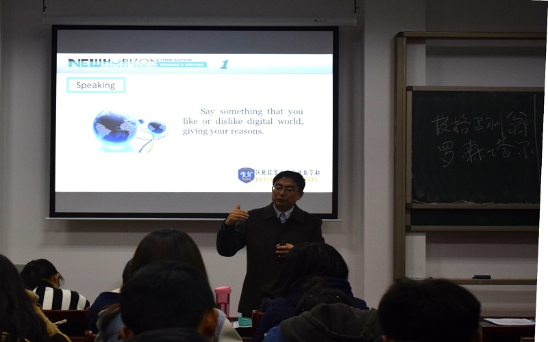 当下,经济不断发展,社会不断进步,我国的大学英语教育面临着重大的机遇和挑战。张教授说,这是最好的时代,互联网的快速发展,为我们提供了更多的资源空间。他给同学们推荐了一些学习英语的微信公众号,如英语巴士、蔡雷英语、英语视频,还有软件TED等。当然,挑战也有,即公司培育的人才与社会需要的对接,他一直在思考,到底该教些什么,又如何教,这个社会真正需要什么?可以说是“前路漫漫,其修远兮”!