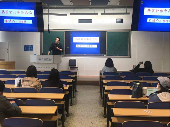 程智淇老师重点介绍了韩国的政治、经济和传统文化,并从韩国的文化影响力和文化产业输出战略角度进行了案例分析。此次讲座有助于师生更好地了解和感受韩国文化,增强师生文化思辨能力,提高外语教师文化输出的自觉性。(撰稿:张燕鑫)