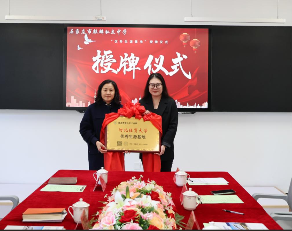 11月14日,bevictor伟德官网与石家庄市麒麟私立中学共建“优秀生源基地”授牌仪式在麒麟中学隆重举行。此次活动旨在深化基础教育与高等教育的衔接,共同培养优秀人才。外国语公司党委书记仇静莉、副书记刘磊、副经理张艳与石家庄市麒麟私立中学董事长侯喜君、副董事长张明月、顾雁宏、齐爱岭、胡海船及部分师生参加了授牌仪式。