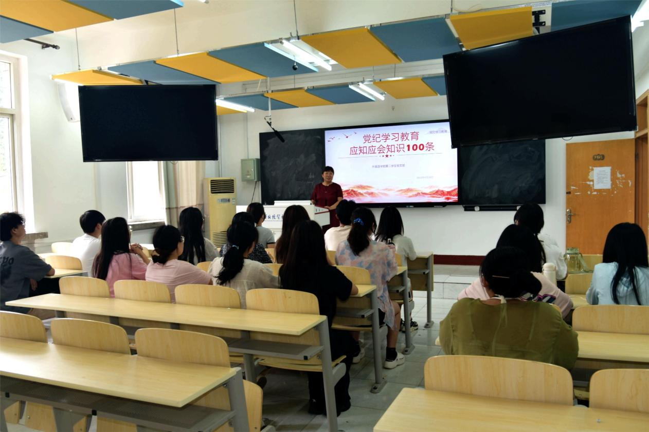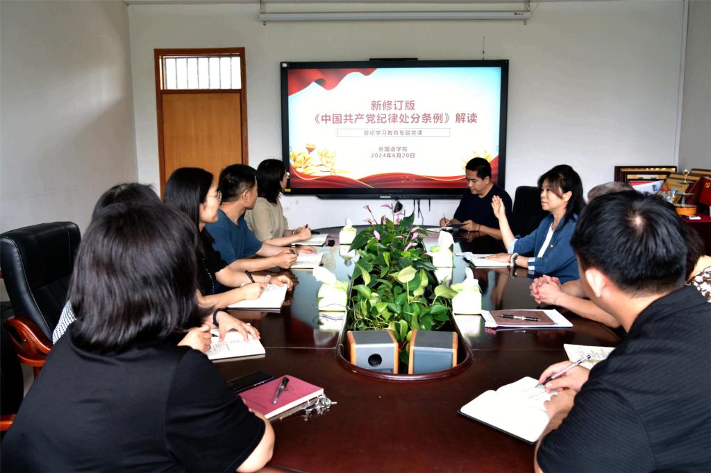 为推动党纪学习教育走深走实,6月20日下午,bevictor伟德官网党委书记仇静莉为全体行政教职工讲授党纪学习教育专题党课。