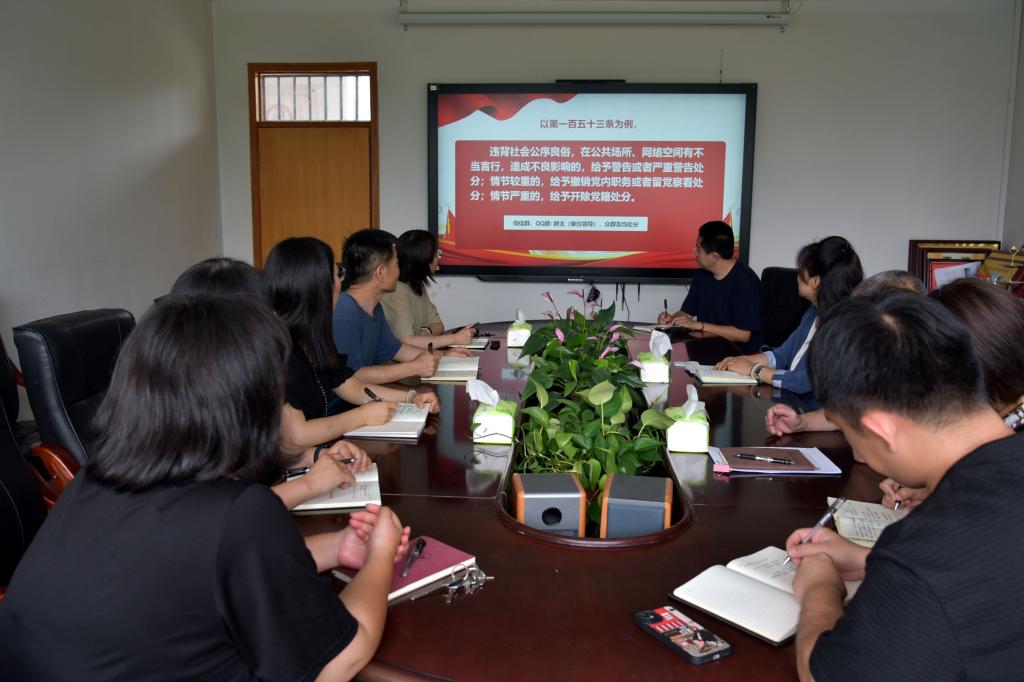 程智淇首先强调了学习党纪的重要性,指出党纪是党的生命线,是每一名共产党员必须遵守的行为准则。他带领大家回顾了党的纪律建设历程,从《中国共产党章程》到《中国共产党廉洁自律准则》《中国共产党纪律处分条例》等重要党规党纪,深入浅出地讲解了各项纪律的基本内容及其精神实质。程智淇特别提到,学习党纪不仅仅是记忆条文,更重要的是理解其背后的逻辑与深远意义,学会用纪律的尺子丈量自己的行为,确保思想和行动始终同党中央保持高度一致。