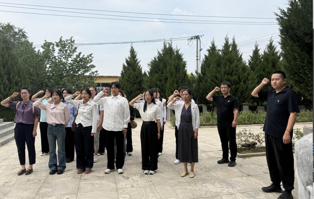 活动伊始,师生党员走进高平地道战纪念馆,通过实物展示和讲解员的生动讲述,深入了解高平村作为电影《地道战》原型村的抗战历史,感悟革命先辈在极端艰苦条件下“以地道为盾、以智慧为剑”的斗争精神。随后,全体党员在庄严肃穆的高平革命烈士纪念塔前敬献花篮,面向党旗庄严宣誓,以铿锵誓言表达对党的忠诚与使命担当。