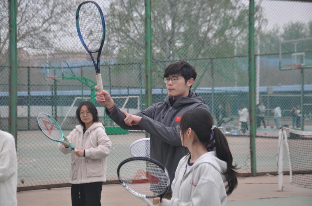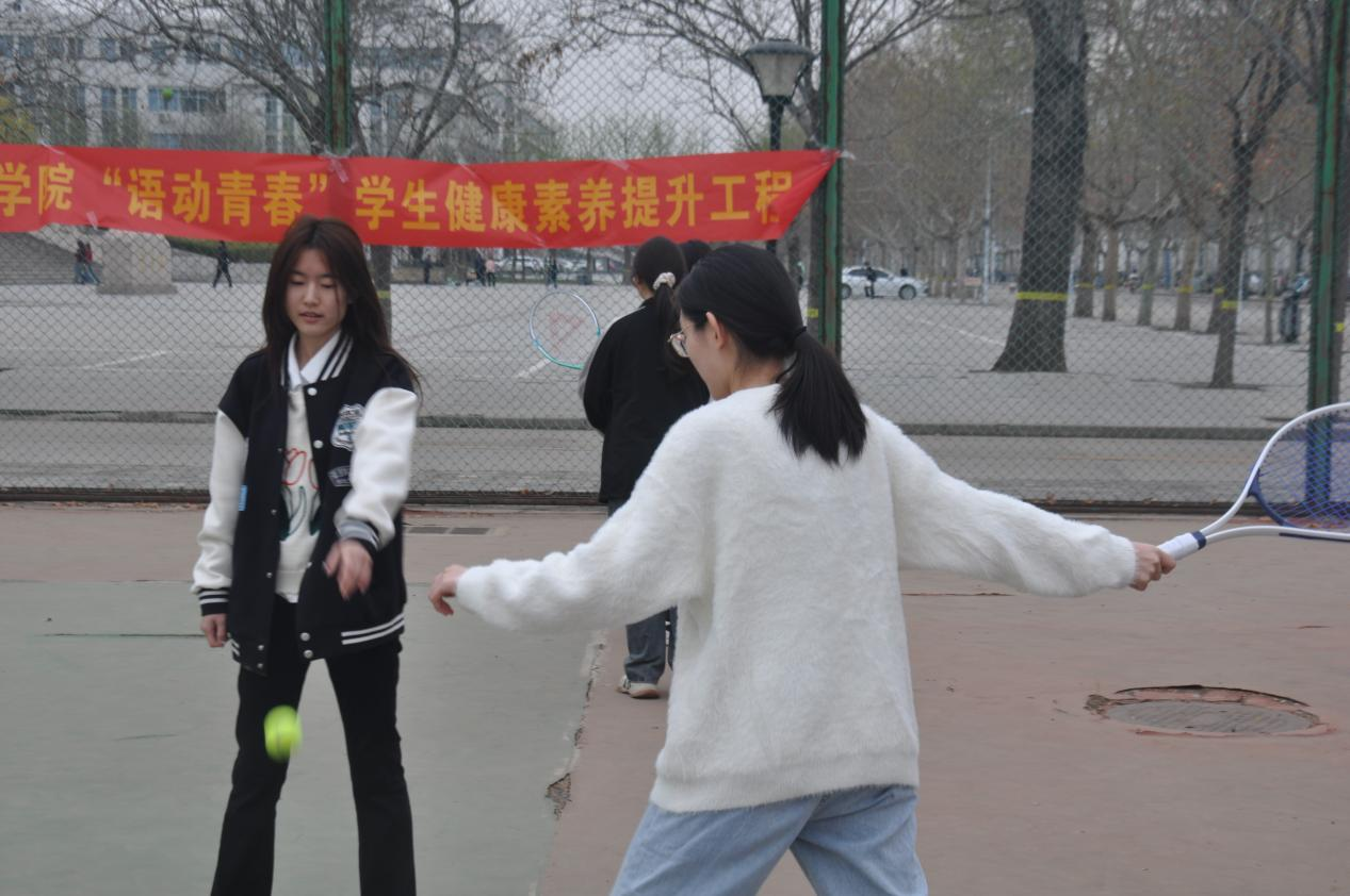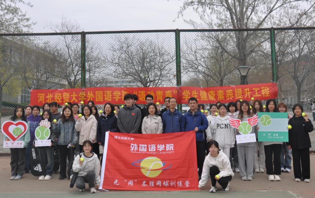 4月1日下午,bevictor伟德官网在公司网球场举办“语动青春”员工健康素养提升工程启动仪式暨无“网”不胜网球训练营开营仪式。公司党委书记仇静莉、党委副书记刘磊、副处级辅导员宋丹、商务英语专业2023级班主任、体育教学部教师张嘉奇、院团委书记付磊及50余名同学参加。