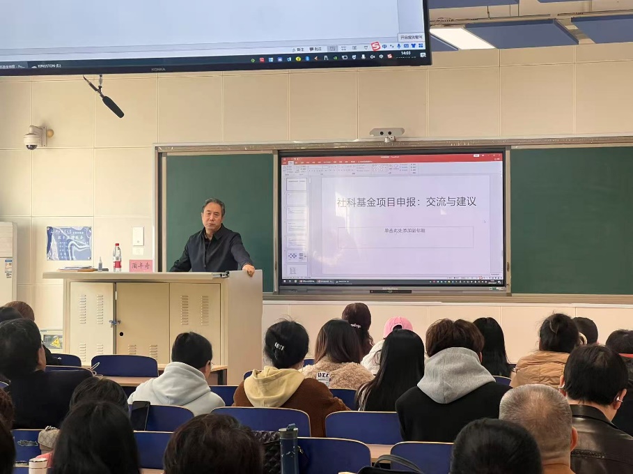 本次讲座题目为《社科基金项目申报:交流与建议》,蔺丰奇教授从科研选题、申报策略、申报趋势与建议三个层面深入解析了社科基金申报的关键要点。蔺教授结合自身多年来主持国家级课题的丰富经验,系统讲解了项目申报的理论依据、模型构建及创新路径。他指出,申报者应注重理论支撑与实践结合,明确研究的核心价值与社会意义,精准对接国家战略需求,强化选题的创新性与可行性。在分析2025年度社科基金申报的整体趋势时,蔺教授重点提及了“数字化与智能化”、“学科交叉研究”等前沿方向,并结合外语学科特点,鼓励教师在研究中拓展学科边界、增强交叉融合意识。