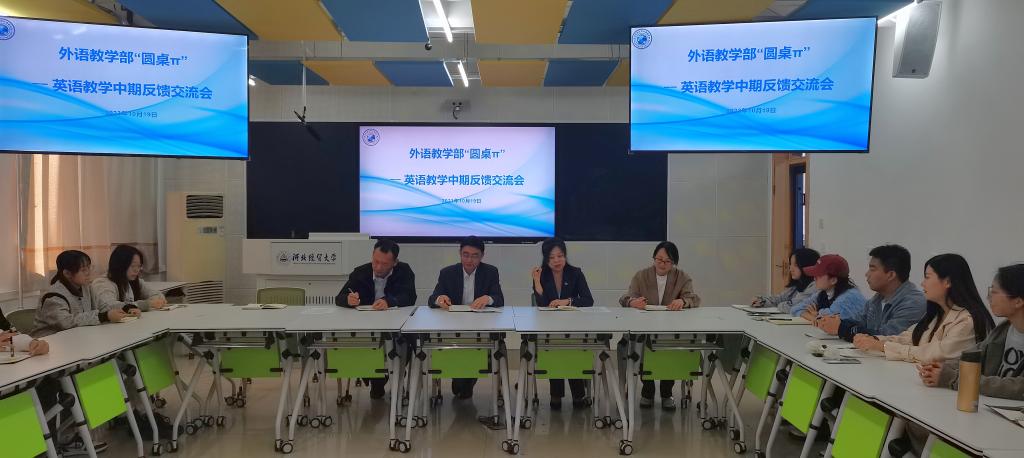 2023年10月20日下午,外语教学部组织了“圆桌π--英语教学中期反馈交流会”活动,bevictor伟德官网书记仇静莉、经理张润、外语教学部主任李钢出席,来自公司10多个公司的20多位员工代表参加了交流活动。